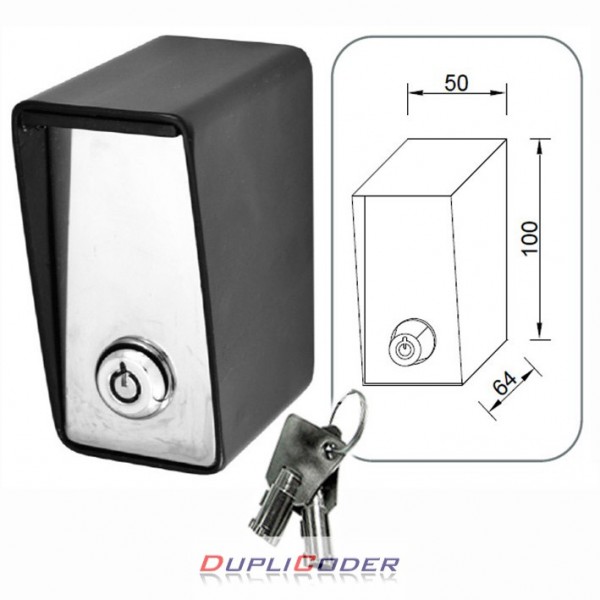 Caja blindada para desbloqueo de electrofreno de motor puerta enrollable, para sobreponer en pared con llave seguridad tubular.