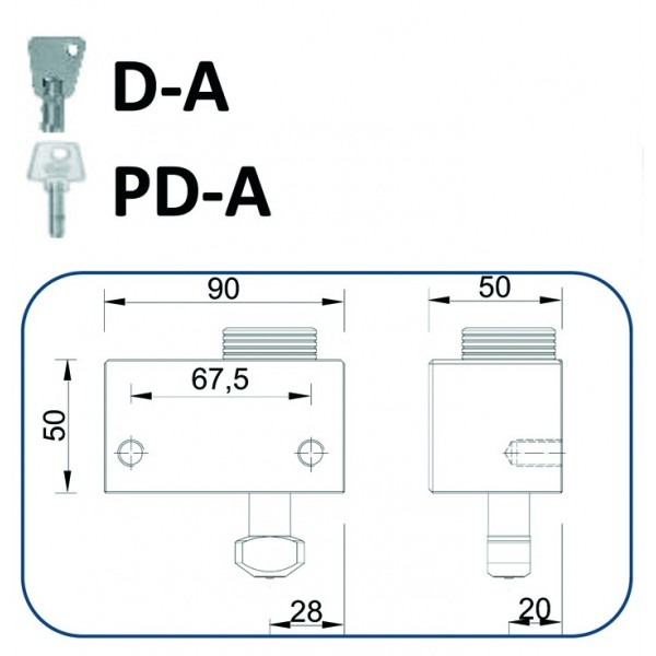 Candado seguridad LYF D-A compatible con cierre MVM modelo K-1100 para puerta enrollable.