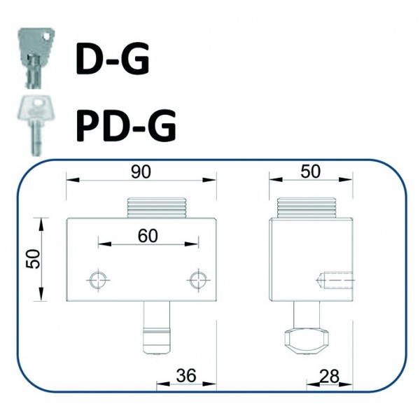 Candado seguridad LYF modelo D-G / PD-G compatible con cierre GILE modelo B-3 para puerta enrollable.