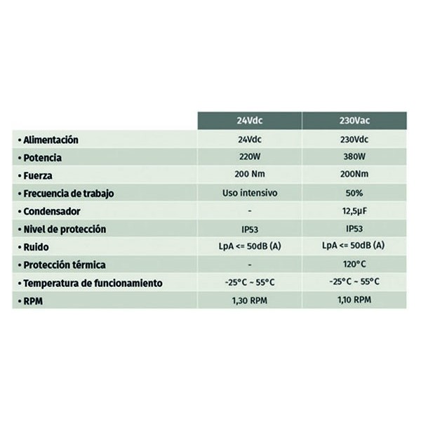 | Potencia del motor eléctrico | 220W- TELICA24, 380W- TELICA230 |