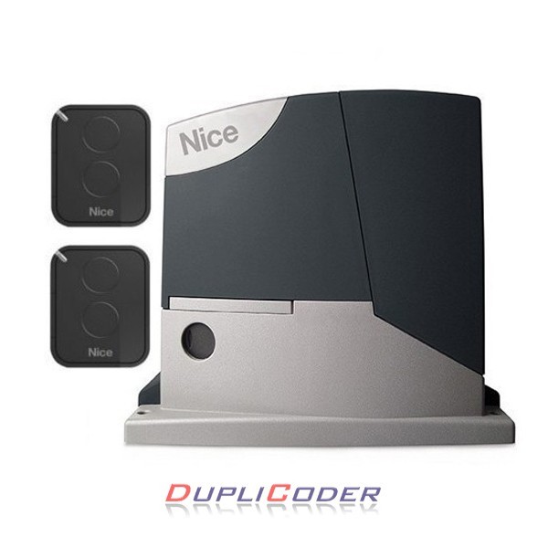 Kit 1 Motor NICE ROAD 400 electromecánico irreversible, 24 Vdc, 400 Kg. con cuadro de maniobra y receptor incorporado y 2 mandos FLO2RE, preparado para la batería auxiliar PS124 (opcional).para puerta corredera de uso residencial, final de carrera electromecánico.