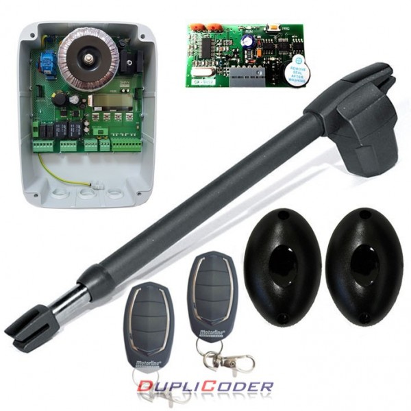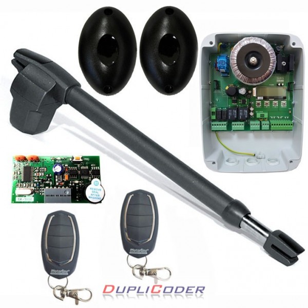 Kit 1 motor batiente MOTORLINE LINCE 24 V. con cuadro de maniobra digital con LCD, receptor, 2 mandos FALK y fotocelula. Uso particular.