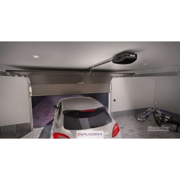 Motor techo 600 Nm MOTORLINE 24 Vdc. con cuadro control, receptor y 2 mandos FALK, para puerta hasta 10 m basculantes de muelle o seccionales. Alimentación 230 V.