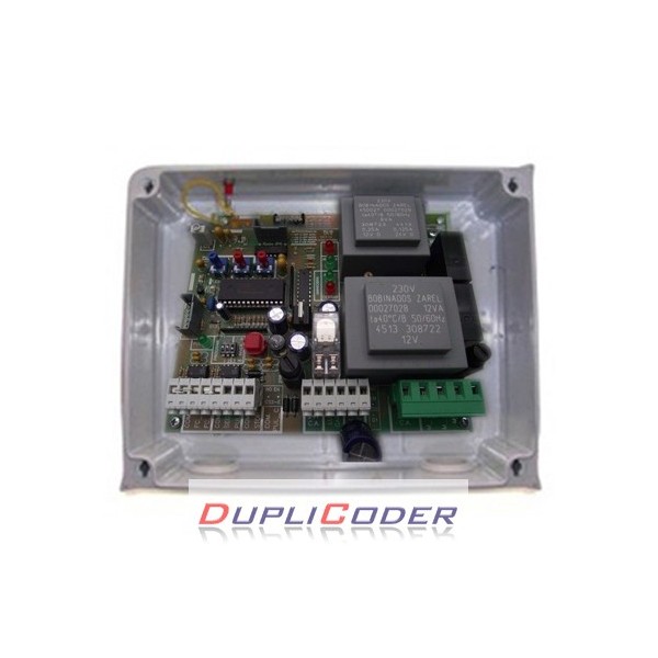 Cuadro de control NICE/CAMAREX CS2E para 1 Motor 230 Vac. para puertas batientes, con finales de carrera y a la vez por temporizadores, dotado de salidas para fotocélula, stop, pulsador alternativo, electrocerradura y salida 24 v.