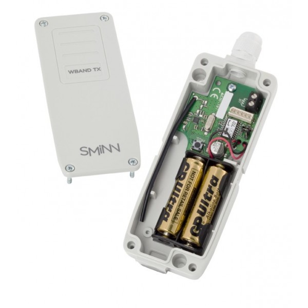 Emisor Wireless SMINN 3 VDC. con 2 pila AA de 868,90 MHz alcance 10 mtrs para bandas de seguridad.